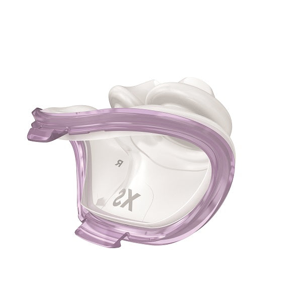 SIZING: AirFit P10 & AirFit P10 For Her Nasal Pillows include a size designation letter on each cushion, and a color coded ring on each cushion base, for easy size identification. Four Nasal Pillow sizes are available :ExtraSmall (XS-Pink), Small (S-Clear), Medium (M-Gray) and Large (L-Blue). Any pillow size can be used with any AirFit P10 or AirFit P10 For Her mask.